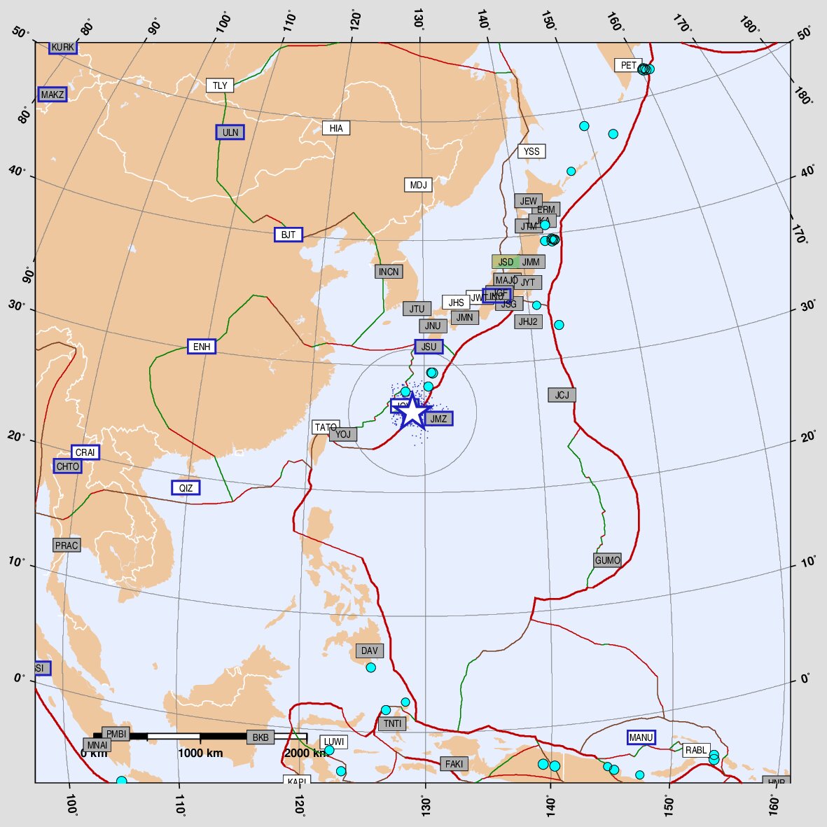 Okinawa / Philippine Sea [subduction zone]: distance:
