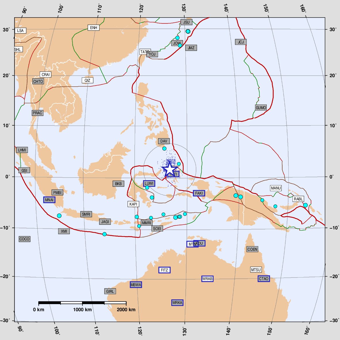 Molucca Sea \ Birds Head [subduction zone]: distance:
