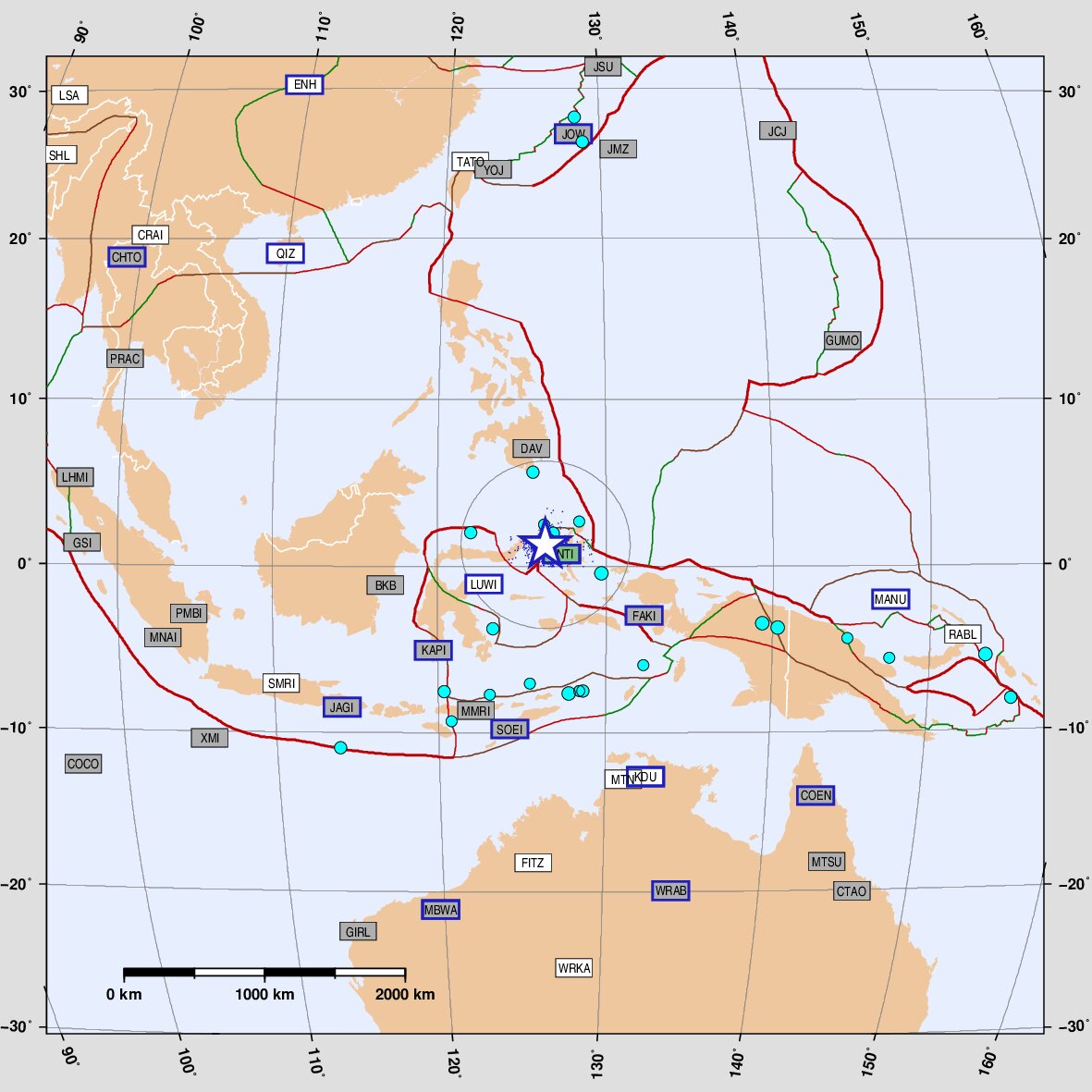 Molucca Sea \ Birds Head [subduction zone]: distance: