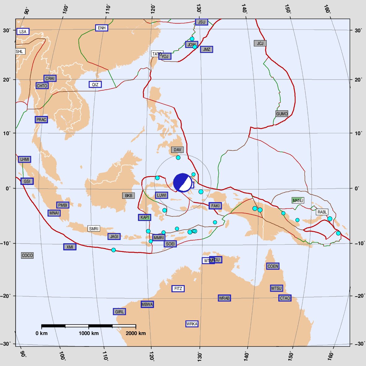 Molucca Sea \ Birds Head [subduction zone]: distance: