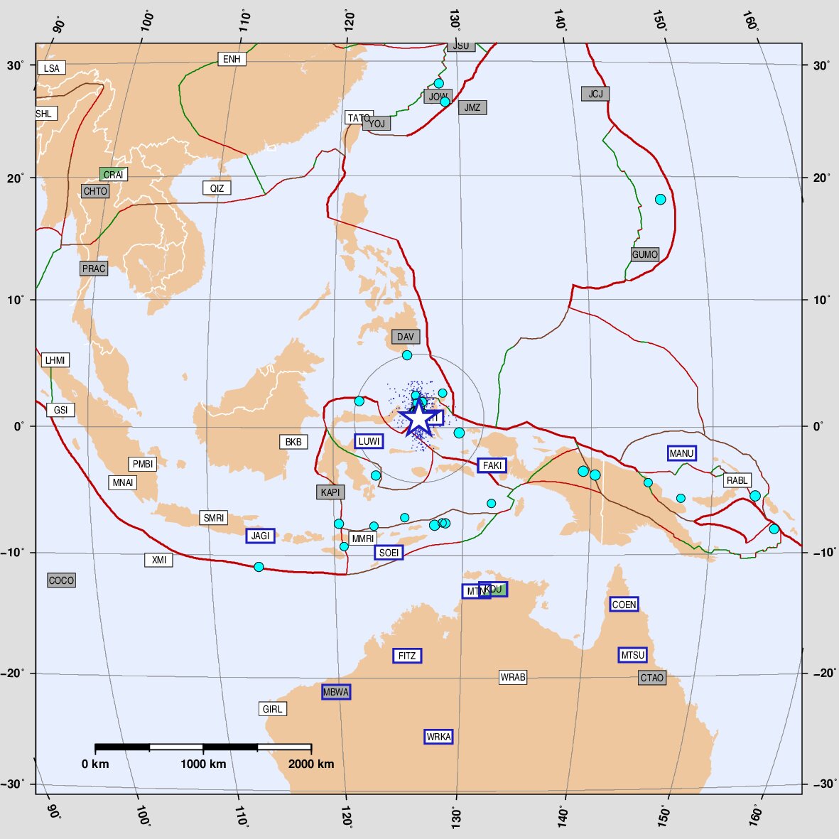 Molucca Sea \ Birds Head [subduction zone]: distance: