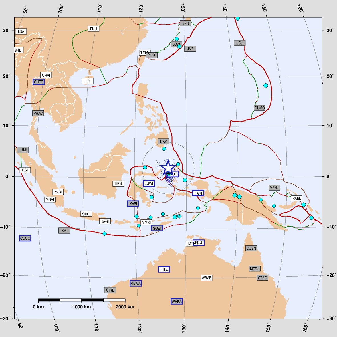 Molucca Sea \ Birds Head [subduction zone]: distance: