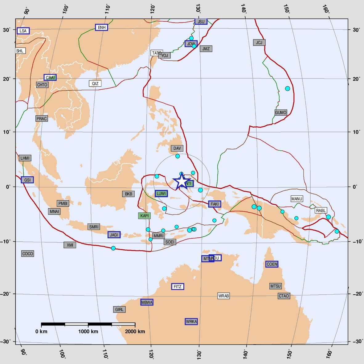 Molucca Sea \ Birds Head [subduction zone]: distance: