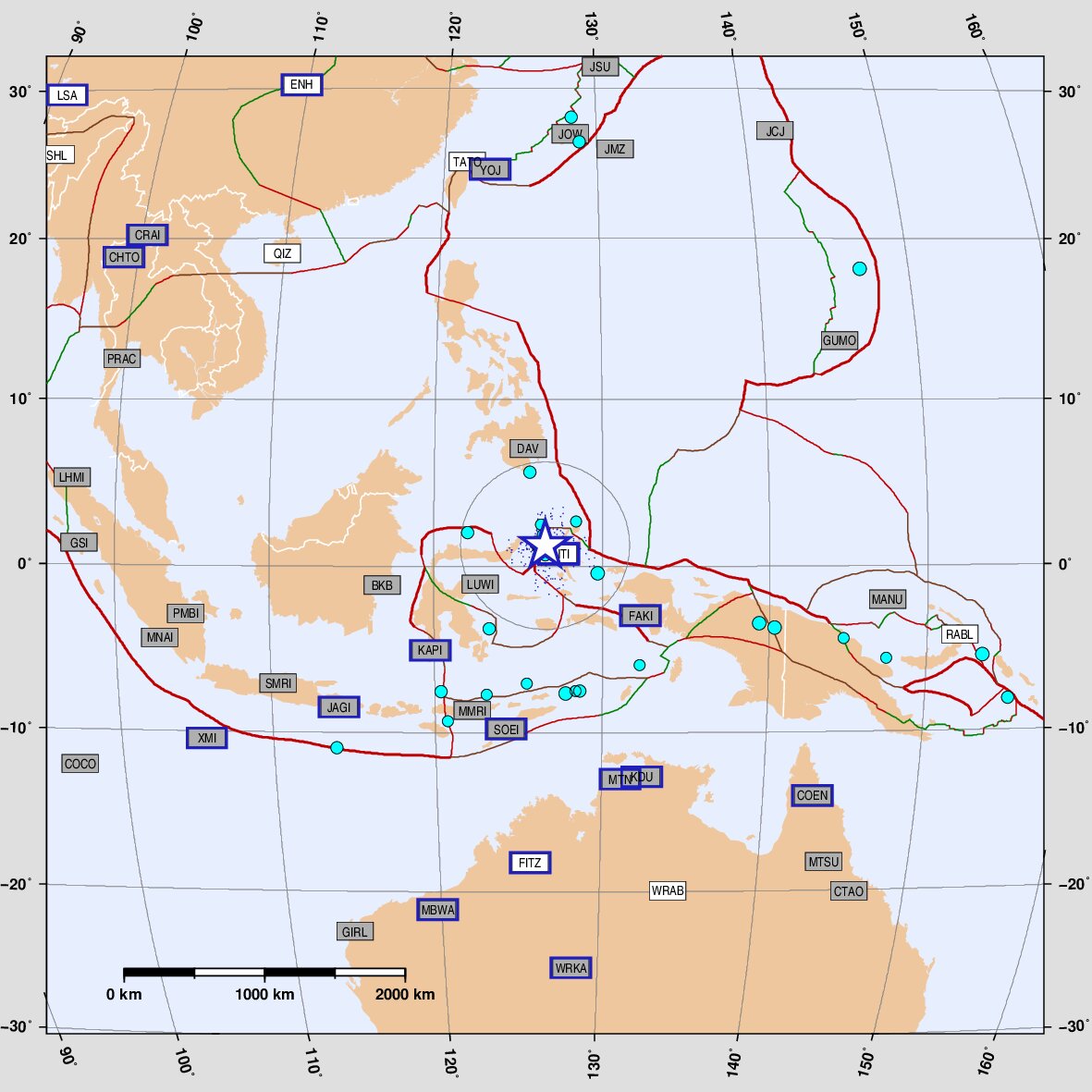 Molucca Sea \ Birds Head [subduction zone]: distance: