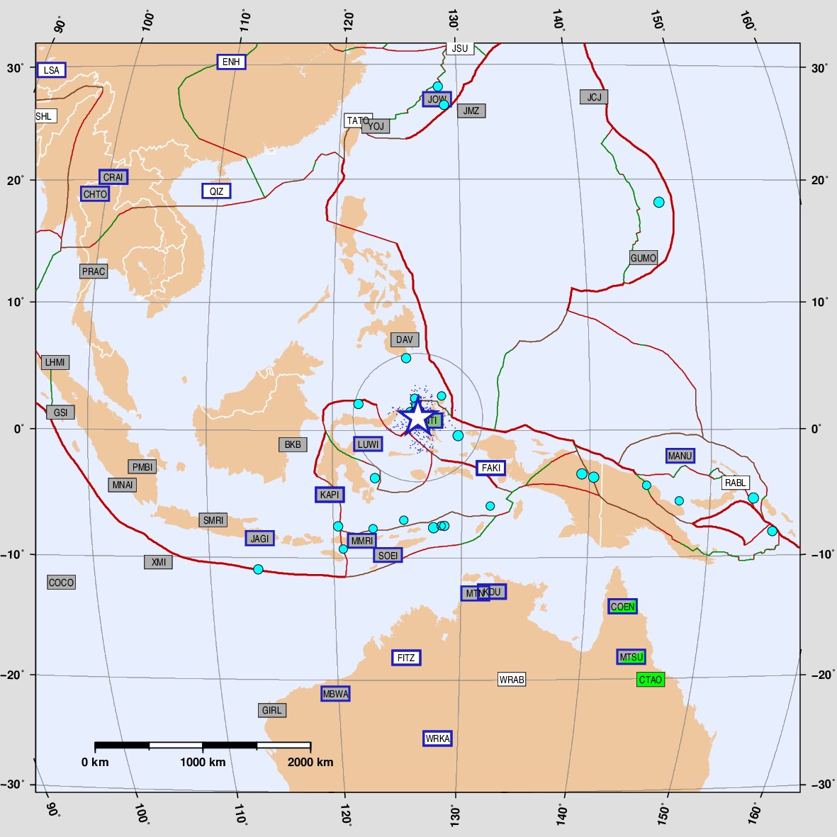 Molucca Sea \ Birds Head [subduction zone]: distance: