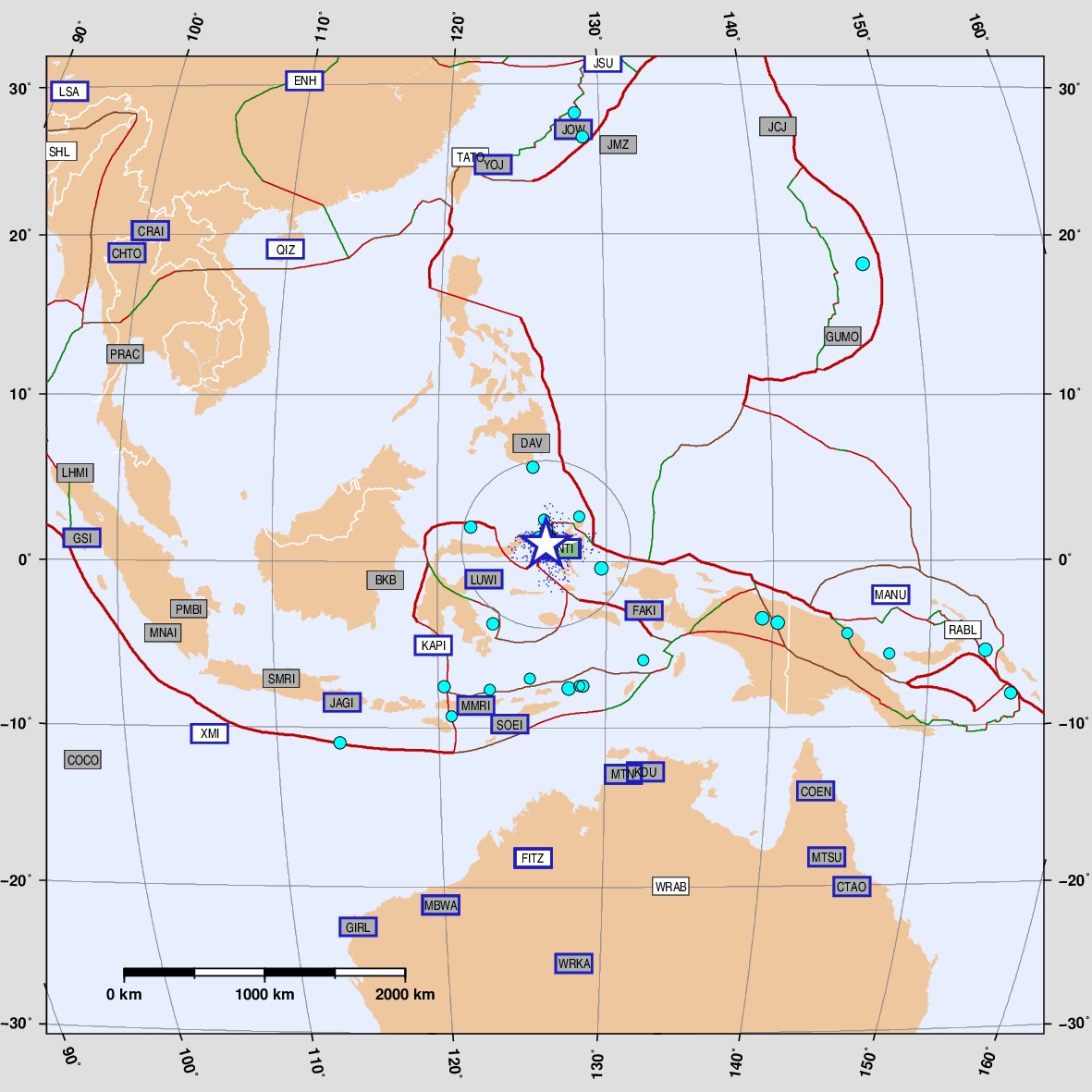 Molucca Sea \ Birds Head [subduction zone]: distance: