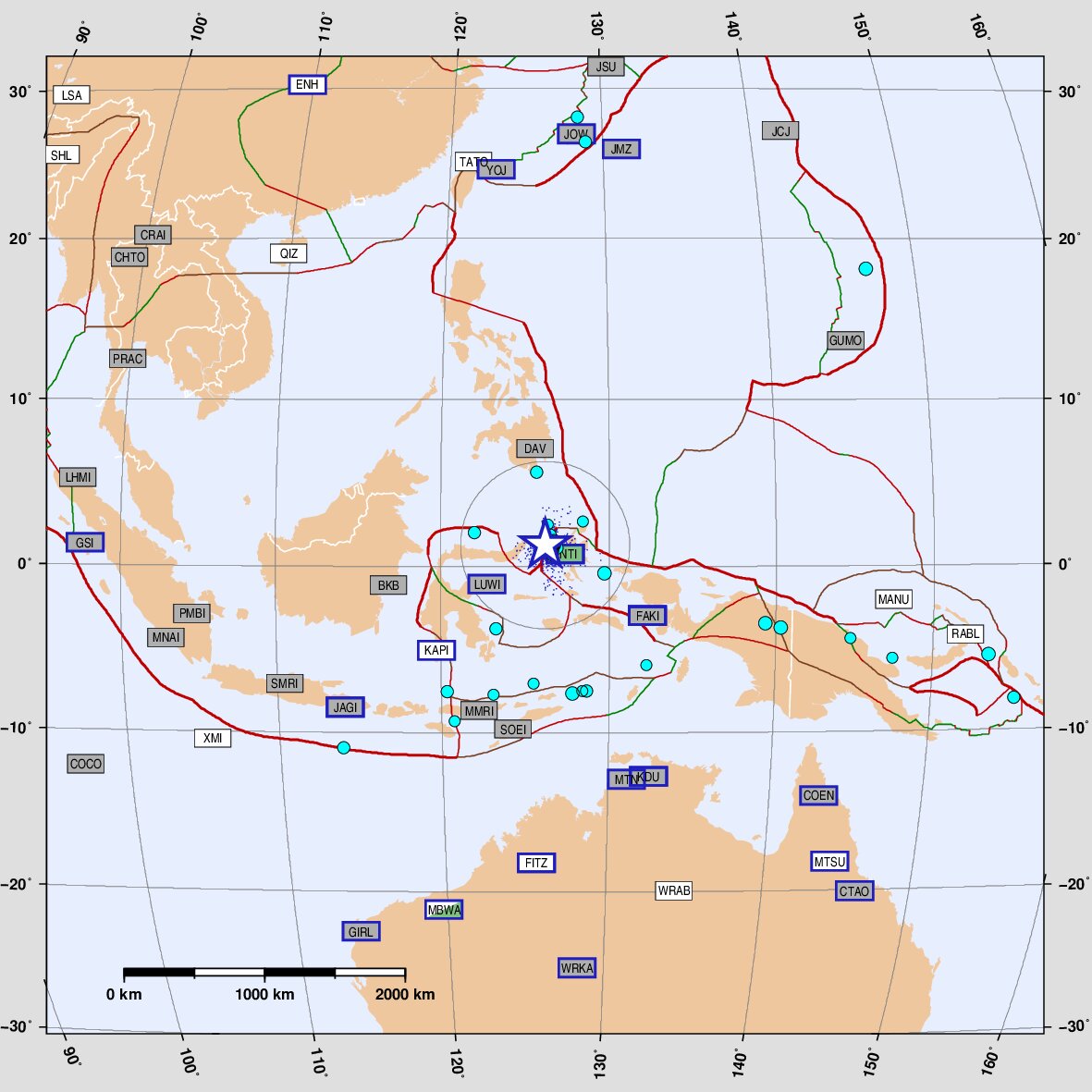 Molucca Sea \ Birds Head [subduction zone]: distance: