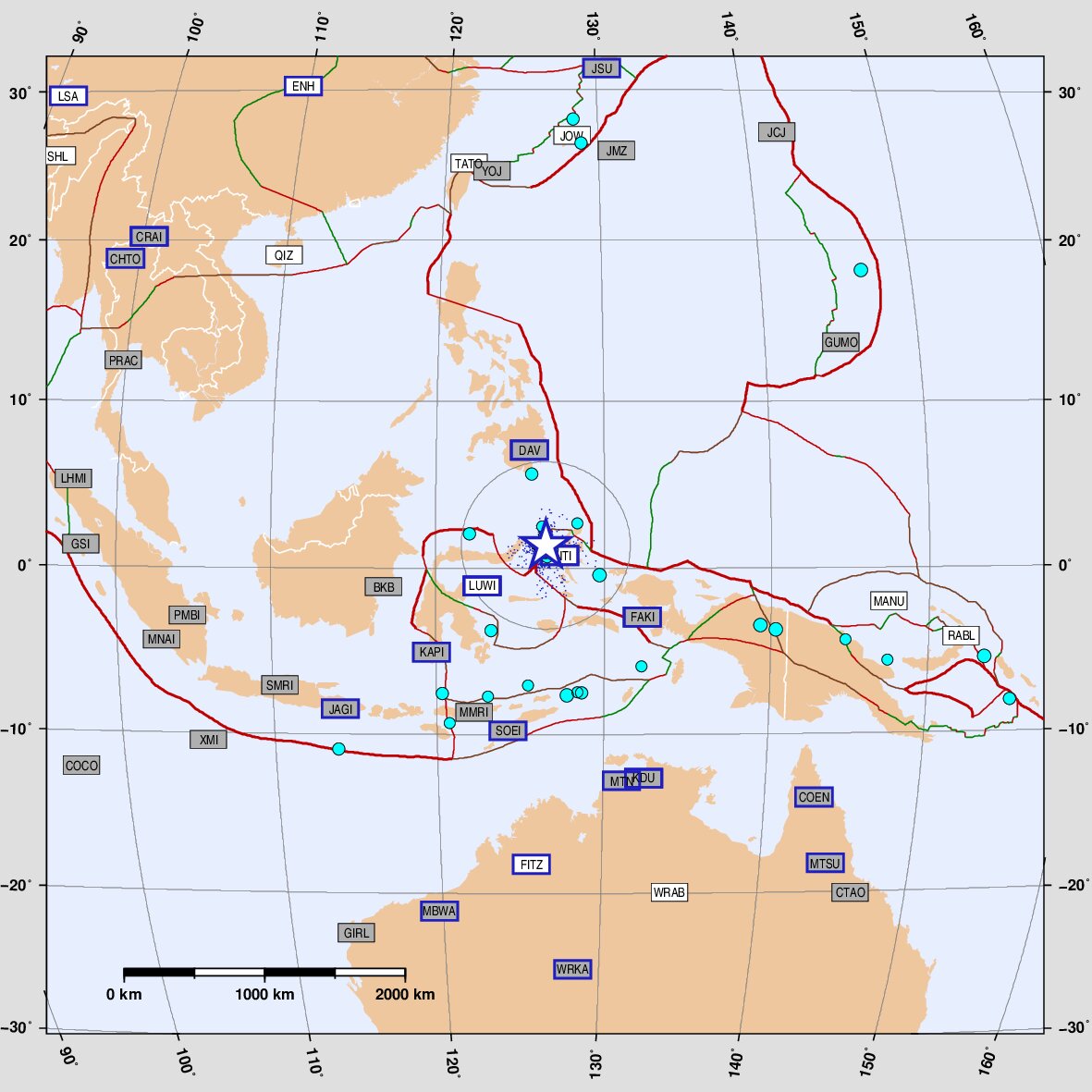 Molucca Sea \ Birds Head [subduction zone]: distance: